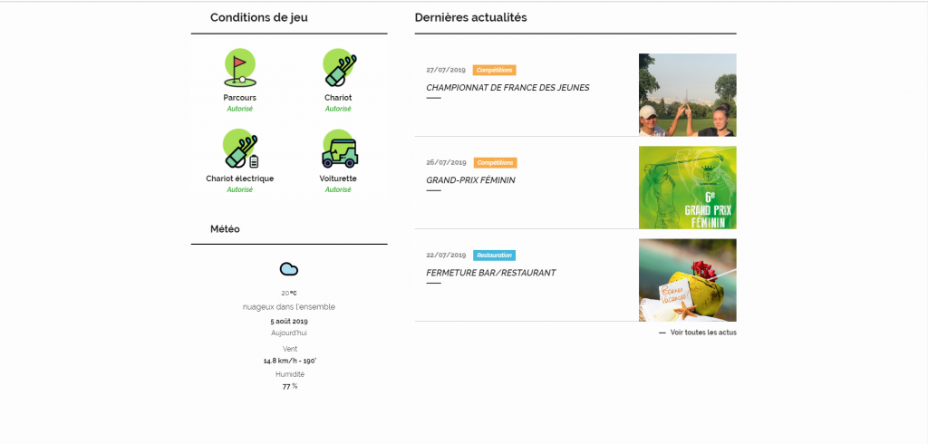- Mettre en avant les hébergements et chambres que le golf propose ainsi que les événements et compétitions